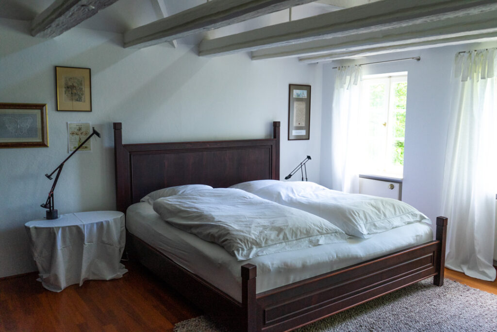 Für Gäste, die zu Besuch kommen, steht nach Absprache die historische REMISE zur Verfügung; ein freistehendes kleines Häuschen mit ca. 30 qm Wohnfläche inkl. eigenem Bad. Ein Doppelbett im Erdgeschoss sowie ein Doppelbett im ausgebauten Dachboden bieten Platz für bis zu vier Personen.